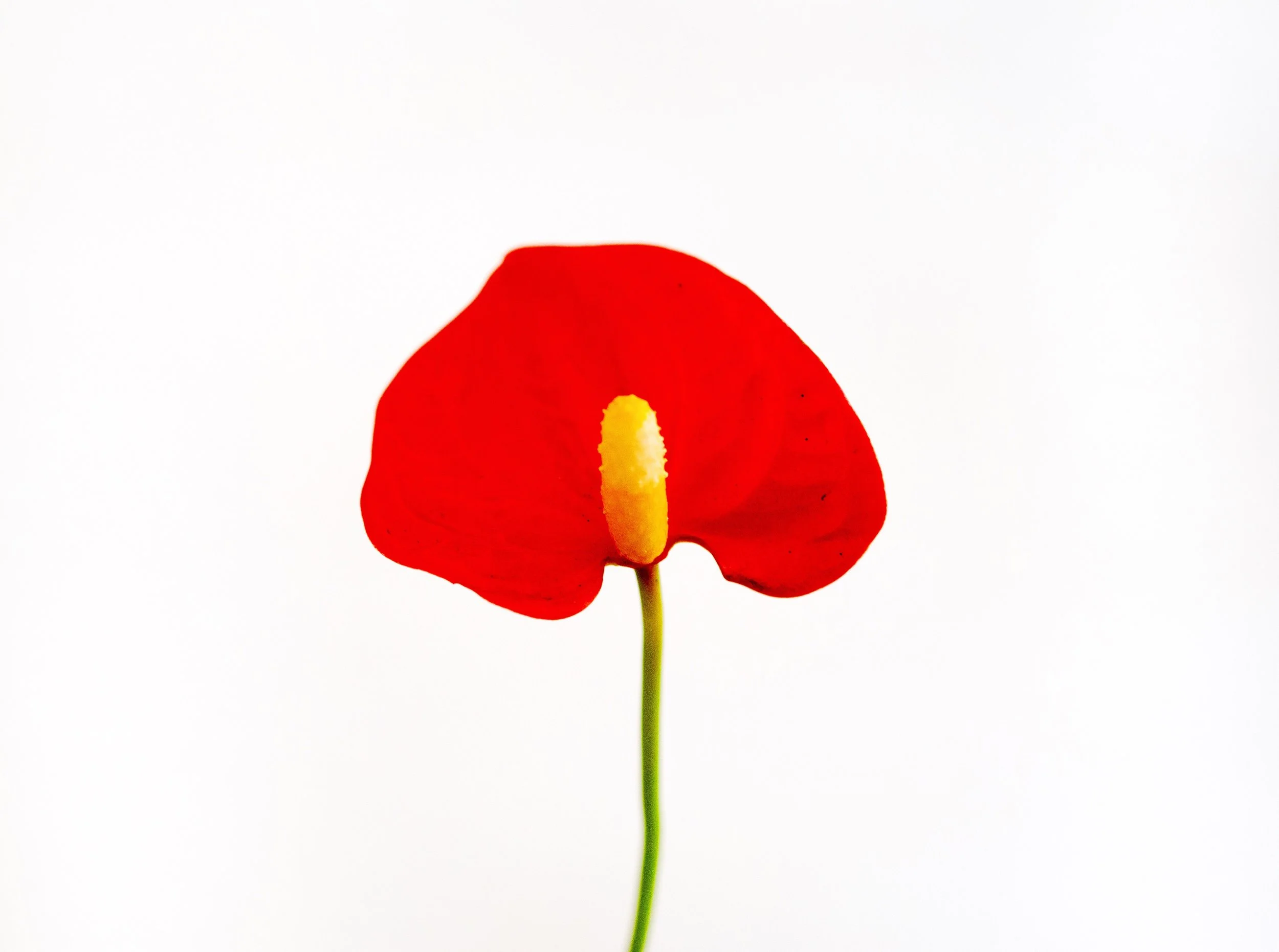An example of an Anthurium inflorescence, with a yellow spadix and rich red spathe.